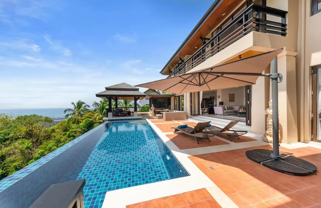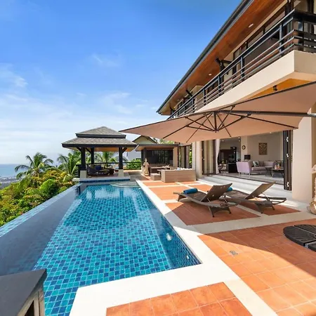 Die Familien-Vista Mar - Scenic Sunset&Sea View verfügt über eine sonnige Terrasse mit Blick auf die Berge und ist 30 Autominuten vom Flughafen Ko Samui entfernt gelegen. Diese Villa bietet einen Außenpool sowie Billard für aktive Gäste.